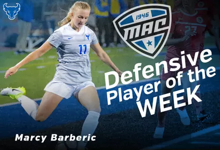 BUFFALO, NY - For the first time in her UB career, freshman defender Marcy Barberic was named Mid-American Conference Defensive Player of the Week, as announced by the conference office on Tuesday. Barberic becomes the first UB player this season to earn the weekly recognition.