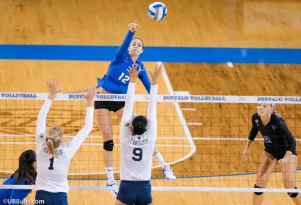 Junior Larra Bickelhaupt had a career-high 22 digs in the match, while sophomore setter Scout McLerran added 11 digs and ran the UB offensive, finishing with 41 assists.
