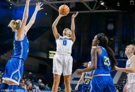 NIAGARA UNIVERSITY, NY – The University at Buffalo women's basketball team (8-2, 0-0 MAC) was upended on the road against the Niagara Purples on Monday night, 75-62. Cassie Oursler led the Bulls with 16 points, three rebounds and three blocks.