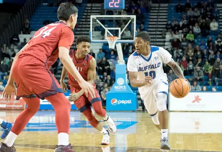 The Bulls led for nearly the entire first half, opening the game on a quick 11-4 run. UB led by just two at 25-23 when the Bulls went on a 13-4 run as a free throw from Ikenna Smart gave Buffalo its largest lead of the game at 38-27 with 3:03 left. UB took a 45-36 lead into the break.