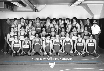 The University at Buffalo wrestling program won the 1978 national championship. For winning the NCAA Division III title, the entire 1977-78 squad and its coaching staff were inducted into the Dr. and Mrs. Edmond J. Gicewicz Family UB Athletics Hall of Fame in 1995. The Bulls placed six wrestlers on the podium en route to the title, including Mike Jacoutot, Kirk Anderson, Bruce Hadsell, Dave Mitchell, Jeff Wheeler and Paul Curka.