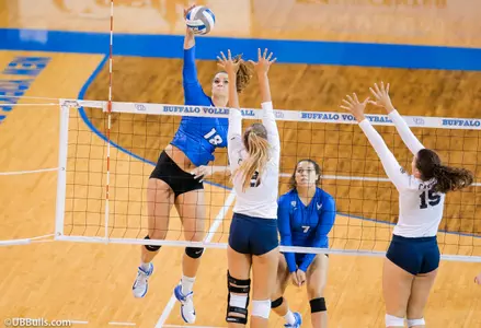 UB's two middles combined for 24 kills and just three errors as Wernette had her best match of the season with 13 kills and just three errors, as she hit .400 with three blocks. Nieves had 11 kills and no errors on 22 swings as she hit .500 with a team-high four blocks.