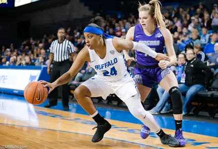 BUFFALO, NY – On a historic night inside Alumni Arena on Wednesday night, the University at Buffalo women's basketball team (2-0, 0-0 MAC) stayed unbeaten and earned some revenge on Big 4 foe Niagara by downing the Purple Eagles 88-61 in front of 1,636 fans. Prior to the game, the Bulls honored their monumental 2017-18 campaign and team by unveiling a Sweet 16 banner on the wall inside Alumni Arena.