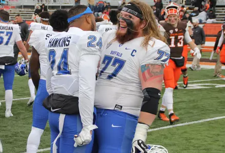 Khalil Hodge led the UB defense with seven tackles, to move into third place in school history with 406 career tackles. He became the fastest player in school history to reach 400 tackles, doing so in only three seasons.