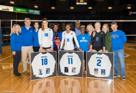 BUFFALO, NY – The University at Buffalo volleyball team won their fourth straight match on Thursday night as the Bulls swept their opponent for the third consecutive contest, notching a 3-0 win over Akron on Senior Night. The victory improves the Bulls to 17-10 and 9-6 in MAC play. The nine wins are a new program record for wins in a year.