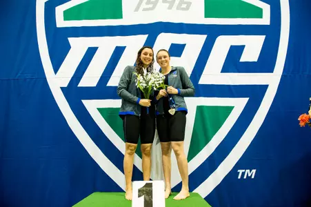 In the diving well, the Bulls didn't fare as well as they would have liked to in the first of two diving events. Sophomore Olivia Gosselin was the Bulls highest finisher in the 1-meter dive as she collected four points and finished in 13th place on Thursday, earning a score of 235.40 in the finals. Freshman Isobel Holcomb was able to earn a point as she came in 16th place with a score of 213.45 in her first career MAC Championships.