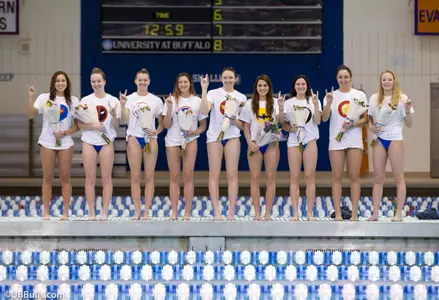 BUFFALO, NY – The University at Buffalo women's swimming & diving team (8-0, 4-0 MAC) closed out their regular season with an unblemished dual meet record, 8-0, as they downed the visiting Cleveland State Vikings, 223-58, on Senior Day at Alumni Arena Natatorium. Buffalo finished off the regular season with an 8-0 dual meet record, marking the first time in program history the Bulls have went undefeated during the dual meet season.