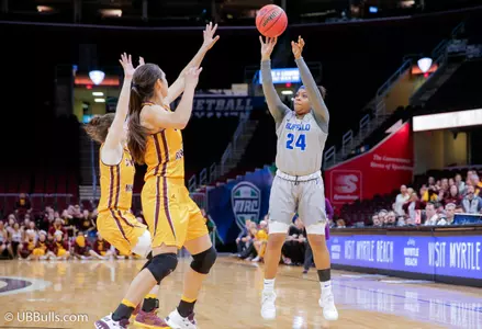 CLEVELAND, OH – The University at Buffalo women's basketball team lost to top-seeded Central Michigan, 96-91, in a hard-fought Mid-American Conference Championship Game at Quicken Loans Arena on Saturday afternoon. The Bulls couldn't overcome the hot-shooting Chippewas who shot 54 percent from the field and knocked down 12 three-pointers.