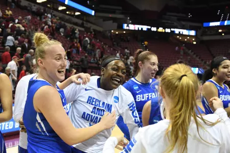 "It's one-ness. Coach always preaches to us that we do this as a team," Dillard said. "The thing about Buffalo is that no one person is standing on their own. We do this as 14 strong, we do this as five coaches strong. We do this as a staff strong. This is one-ness and this is what it's about. To be an 11-seed going to the Sweet 16, not many teams do that. I heard earlier that this is the year of upsets. To be a part of this year and to be apart of the NCAA Tournament, not just the men but the women's side too, and to be a part of the MAC, who is doing some great things right now, is what it is, it is one-ness. I'm so amazed to be a part of this and I'm amazed to be back as a New York state hometown kid. To be a part of putting your state on the map, being a part of Buffalo, is what it is, it's one-ness."