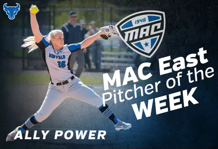 BUFFALO, NY – Junior pitcher Ally Power of the University at Buffalo softball team (11-14, 3-0 MAC) was named MAC East Division Pitcher of the Week on Tuesday, as announced by the conference office. Power earns the weekly recognition for the first time in her Buffalo career.