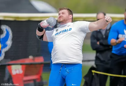 BUFFALO, NY – University at Buffalo throwers Ryan Cribbin took gold and Devon Patterson took silver in the men's shot put on Friday at the Mid-American Conference Outdoor Track and Field Championships at UB Stadium. It marked the ninth straight year the Bulls won gold in the men's shot put at the MAC Outdoor Track and Field Championships.