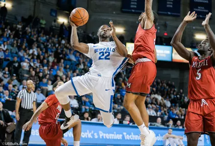 BUFFALO, NY - The nationally-ranked University at Buffalo men's basketball team outscored Miami (OH) by 20 points in the second half, defeating the RedHawks, 88-64, in front of 6,177 fans at Alumni Arena. The crowd was the ninth largest in the current arena configuration. The win was the 19th straight at home for the Bulls as they improve to 15-1 on the year and 3-0 in league play.