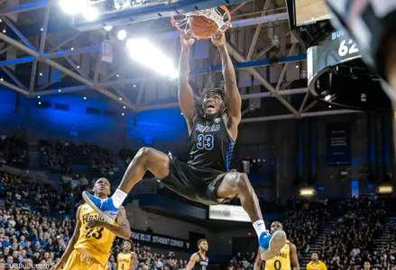 The Bulls led 70-54 when they scored eight straight points, which began on a thunderous one handed dunk from freshman Jeenathan Williams. A layup by junior Davonta Jordan gave UB the 78-54 lead, its largest of the night.