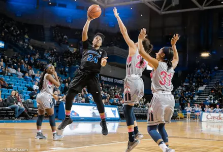 Buffalo would get off to another good start in the second with a 10-6 run, with five points coming off a Wilkins three and a Hemphill fast break layup. The Bulls would continue to pull away as Wilkins drilled her second three of the quarter before Dillard drained back-to-back triples and Wilkins knocked down her third three of the period to give the Bulls a 41-25 lead, their largest of the first half, and UB would take a 41-27 lead into the break.
