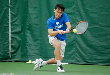 UB took the doubles point with victories at second and third doubles. Sophomore Matthew Johnson and senior Ethan Nittolo won easily at second doubles, 6-1, and then Buffalo clinched the point at third double as sophomore Nickolas Frisk and junior Hao Sheng Koay came away with a 7-6 (4) win in the tiebreaker.